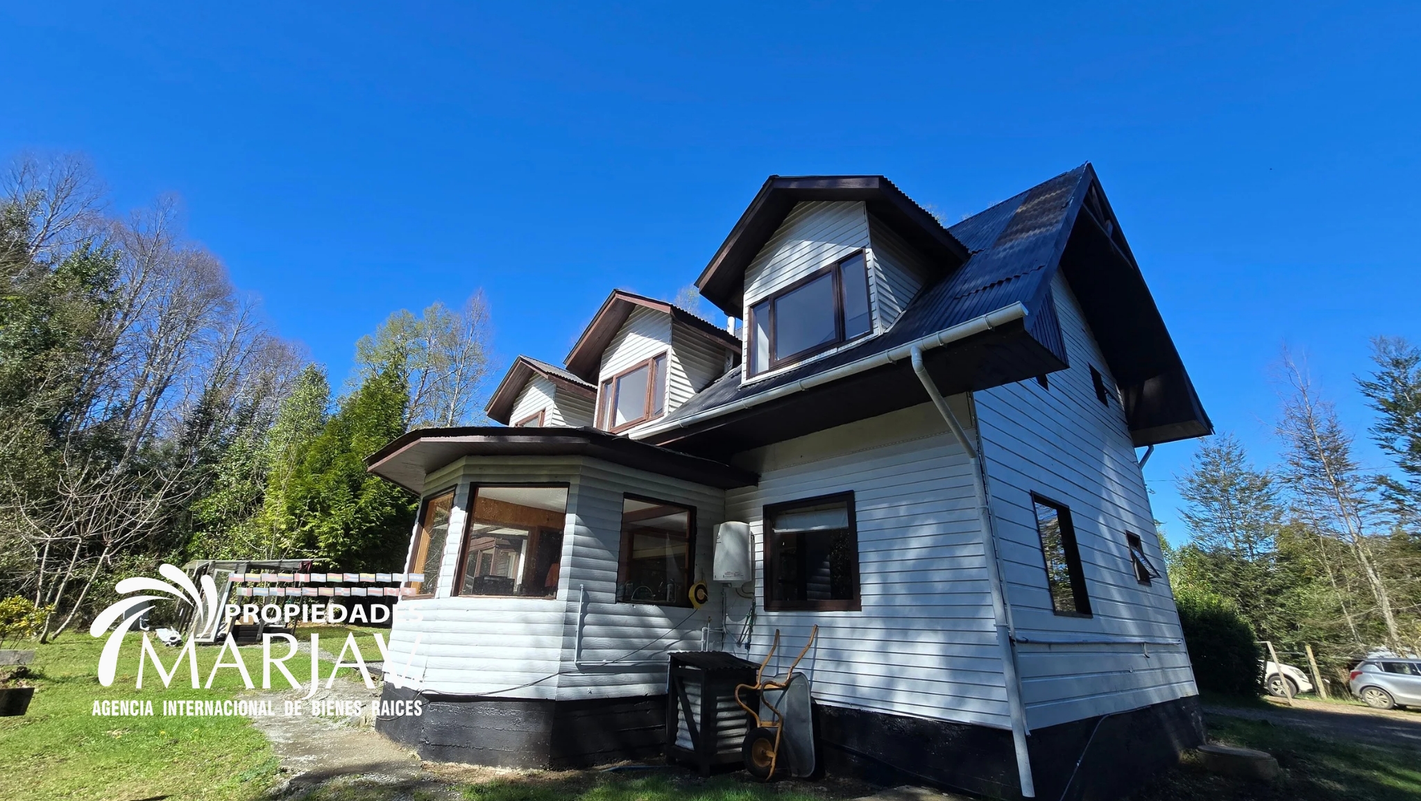 Casa de 160m² construida en estructura de madera nativa, rodeada de hermoso bosque Nativo y algunos árboles frutales. Cuenta con pozo profundo de 30 metros más agua potable en proceso de desarrollo en su ejecución.